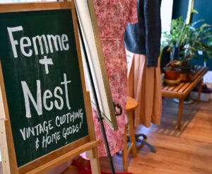 At Femme & Nest, sustainability isn’t just a buzzword—it’s a way of life. We put our commitment into action in every aspect of the shop. Everything is either secondhand or vintage, from the fixtures and hangers to the seating and displays.