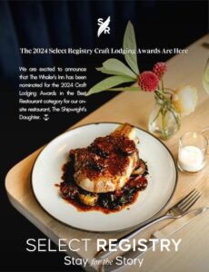 Select Registry’s Craft Lodging Awards celebrate the best in accommodations, experiences, and hospitality. We are incredibly proud to be recognized for our dedication to sustainability, innovative takes on local seafood, coastal charm, and exceptional service.